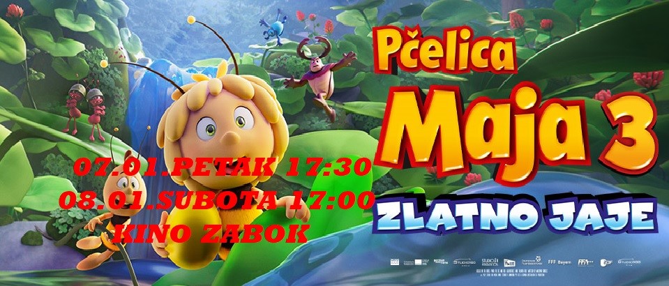 07.01.PETAK 17:30 i 08.01.SUBOTA 17:00 PČELICA MAJA 3:ZLATNO JAJE IZVORNO IME: Maya the Bee 3: The Golden Orb ŽANR: animirani REDATELJ: Noel Cleary ULOGE: Sandra Hrenar, Hrvoje Perc, Fabijan Pavao