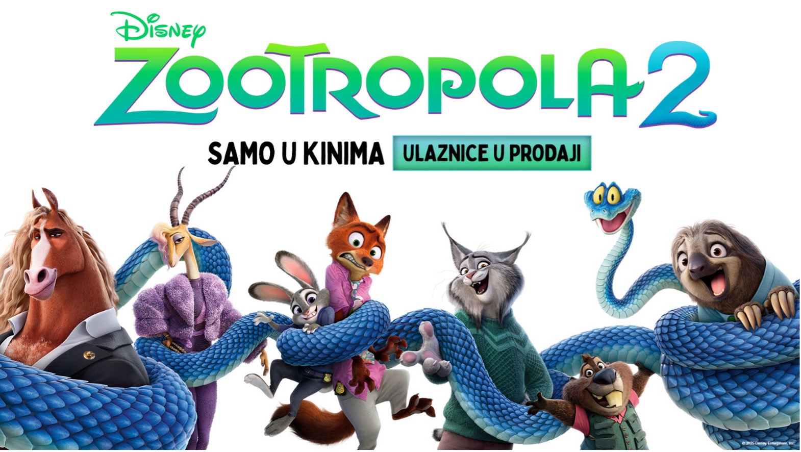 Walt Disney Animation Studios predstavlja dugo očekivani nastavak Oscarom nagrađenoga filma iz 2016. Pripremite se za još bržu, luđu i zabavniju utrku kroz grad u kojem je sve moguće! Nakon što tajanstveni Gary De’Snake sleti u Zootropolu i okrene sve naglavačke, odvažna policijska novakinja Iva i njezin šarmantni partner Nikola moraju krenuti u akciju, prerušiti se i istražiti najskrivenije četvrti grada – od vlažnih močvara do vrelih pustinjskih dina. Utrka s vremenom, neočekivani saveznici i humor od kojeg će cijela dvorana brujati – ZOOTROPOLA 2 širi svoj svijet i podiže uloge: prijateljstvo će se naći na kušnji, a svaki korak otkriva novu tajnu.